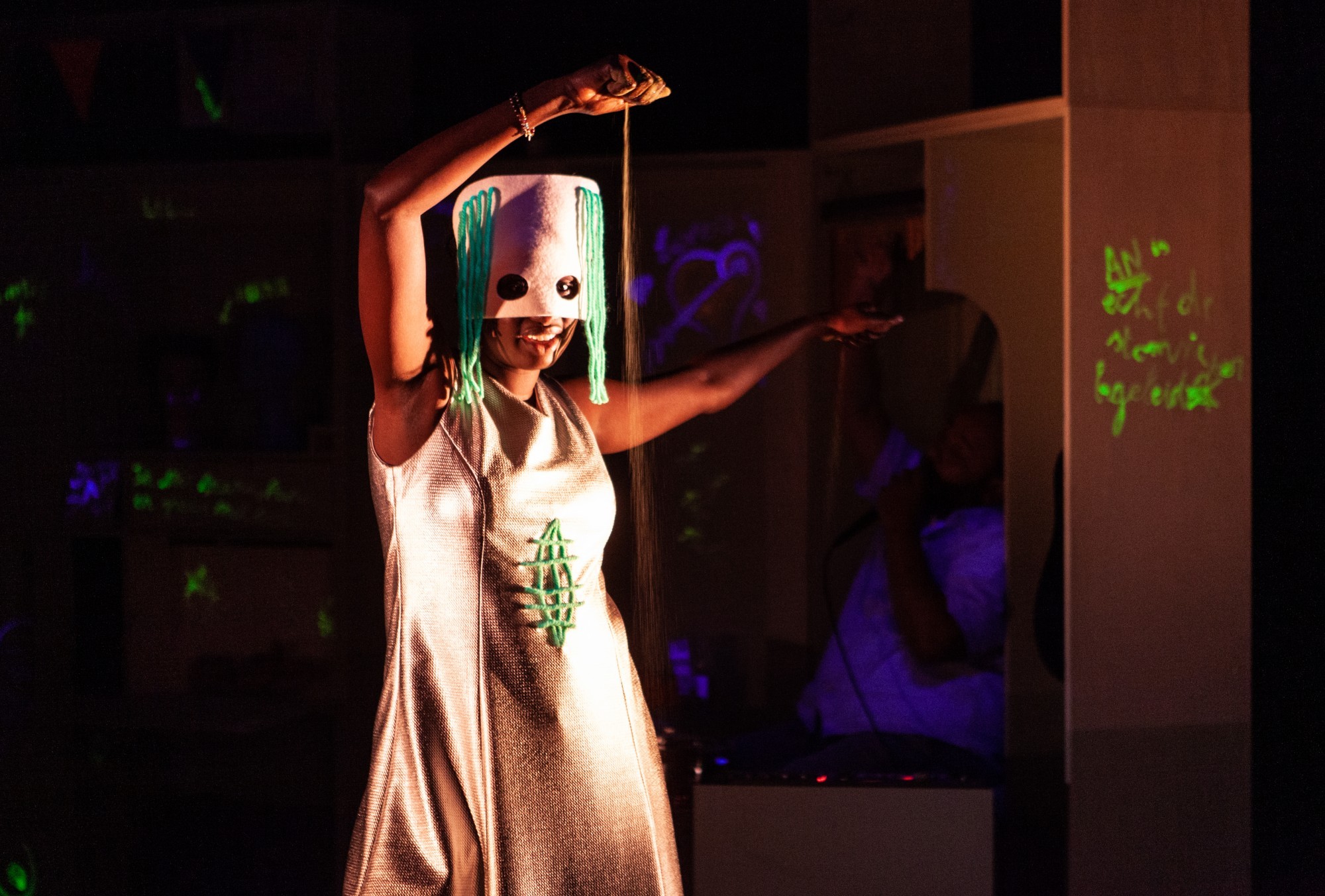 La femme de théâtre Aminata Demba a puisé son inspiration dans des entretiens avec des enfants et des adultes qui ont été séparés pour une durée plus ou moins longue de leurs parents, et avec des spécialistes de l’accueil en foyers pour enfants. À partir de ce matériau, Hanneke Paauwe a écrit un récit doux-amer sur ce que ça fait de ne pas pouvoir habiter chez soi et de devoir vivre sans ses parents. Avec la complicité du musicien Sam Gysel et dans une mise en scène de Jo Roets, Aminata Demba interprète un spectacle sensoriel sur la résilience des enfants dans notre monde complexe. Le lieu secret de Binta est une histoire trépidante rehaussée d’humour, de musique et d’odeurs suaves. Studio Kuurjeus a conçu une chambre