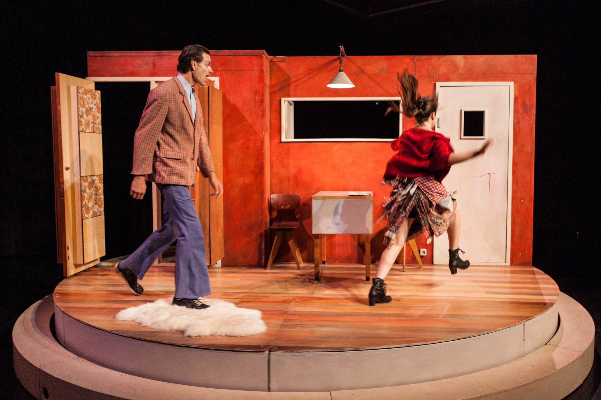 Peer is een spannende kleutervoorstelling. Het huisje op een draaitoneel in combinatie met het fysieke acteren en de wervelende muziek creëren pure slapstick, maar Peer is ook een ontroerende vertelling over vreemd en anders zijn.